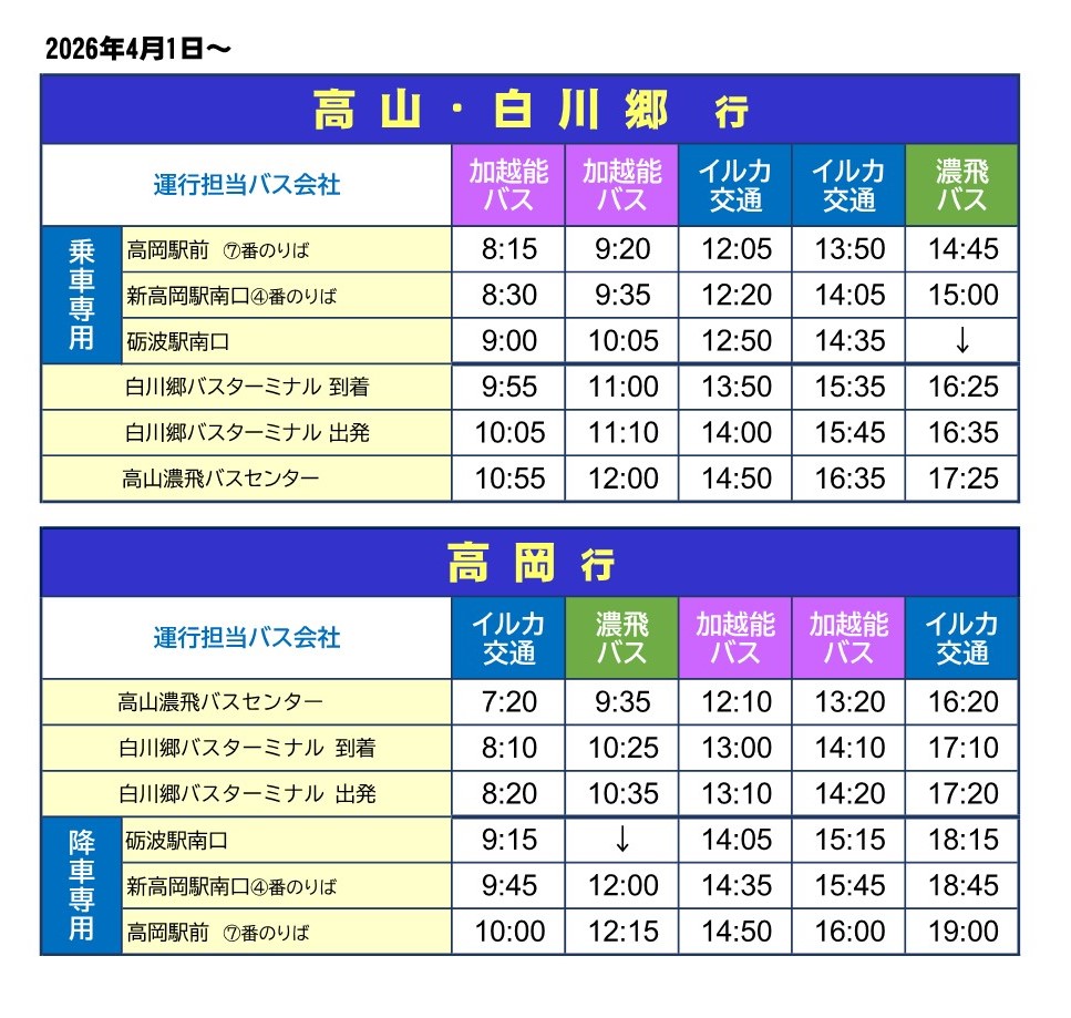 この度2026年4月1日より、下記の通りダイヤを変更いたします。