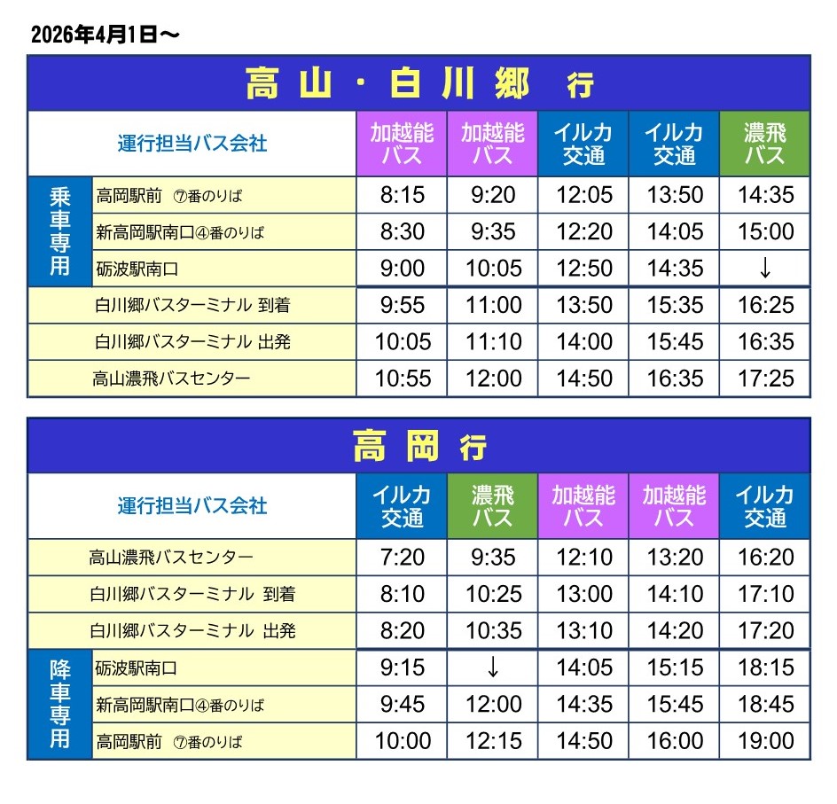 高速バス【高岡-白川郷-高山線】